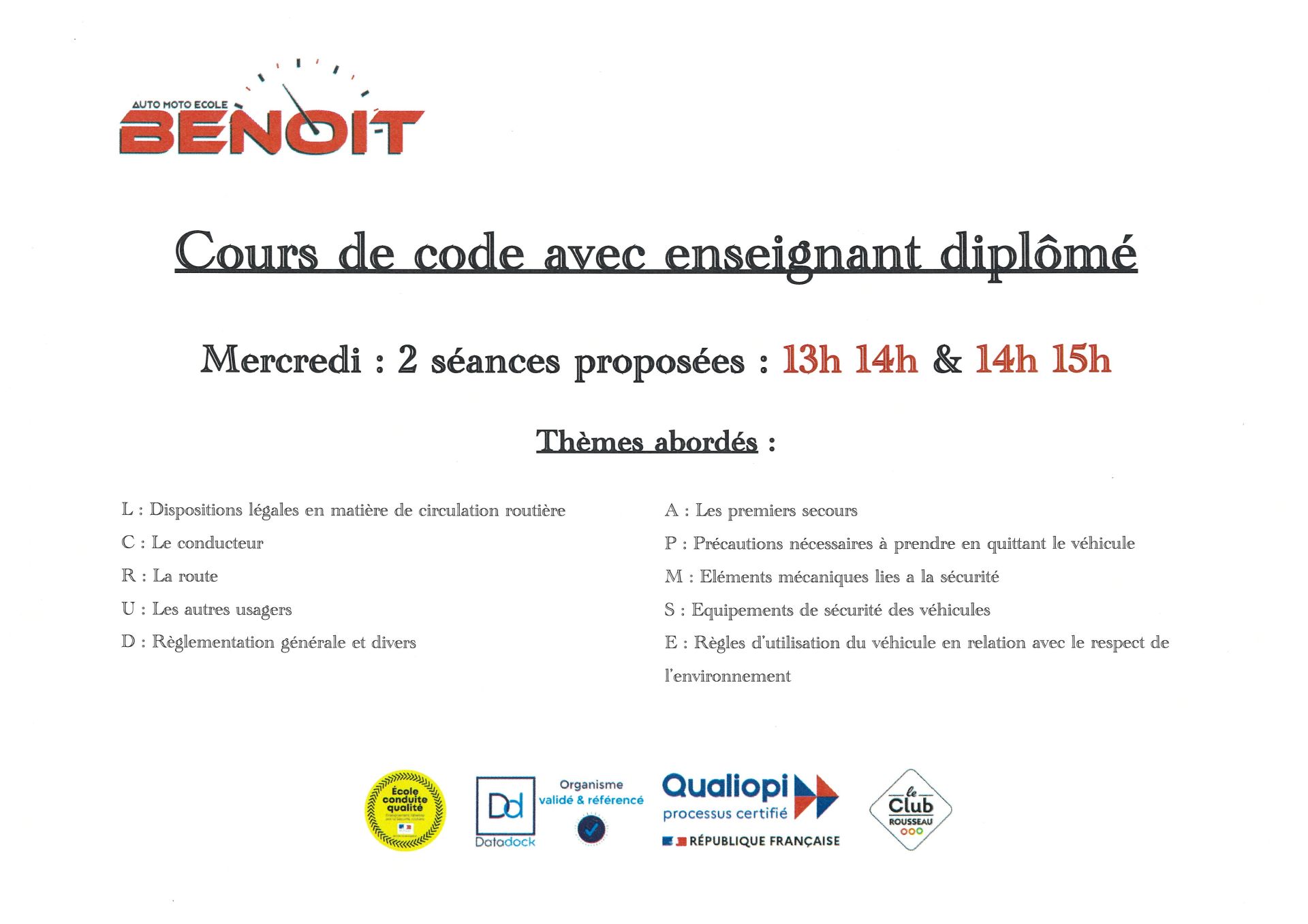 Nous ne dispensons pas de cours de code moto en présentiel.