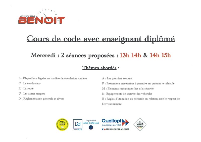 Ces critères ont été retenus dans le cadre du label « qualité des formations au sein des écoles de conduite » dont certains doivent obligatoirement apparaître sur le site Internet.