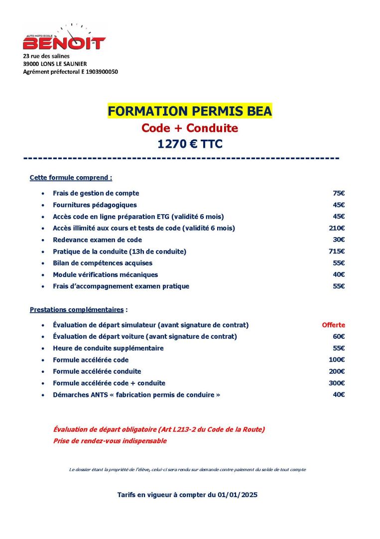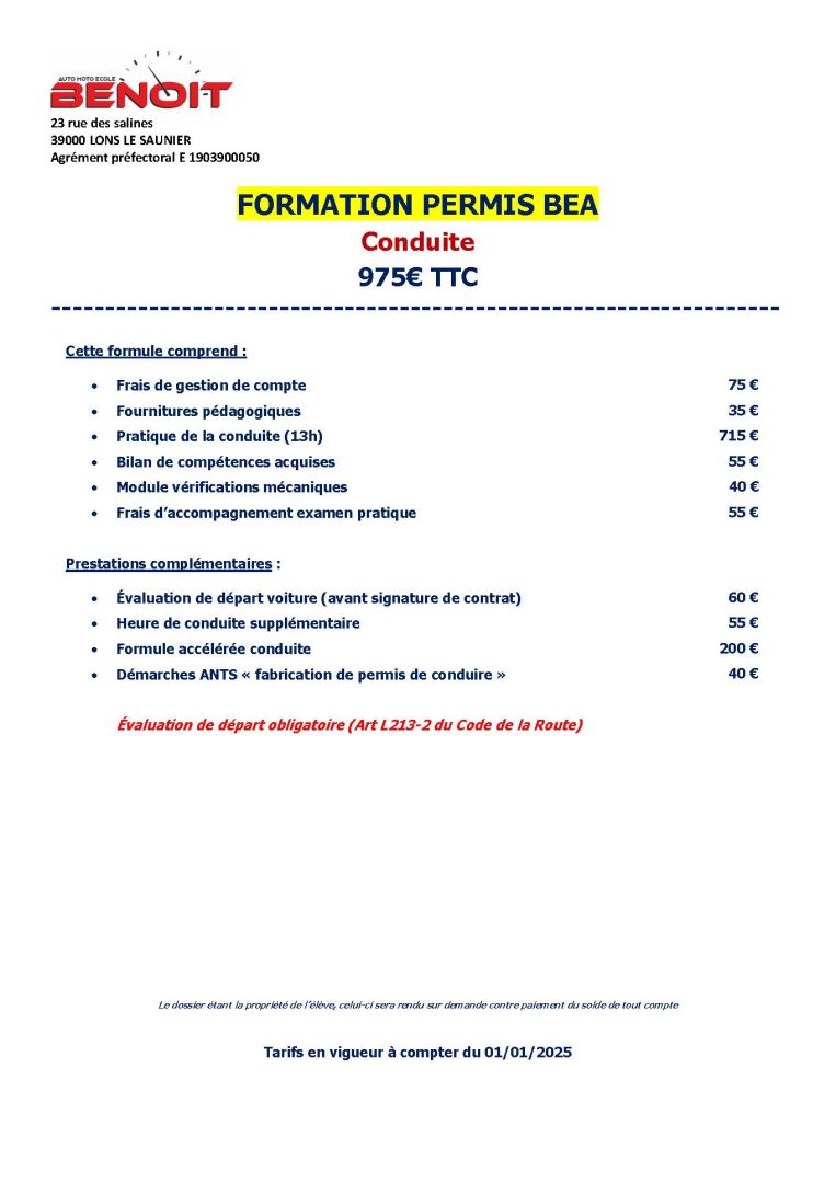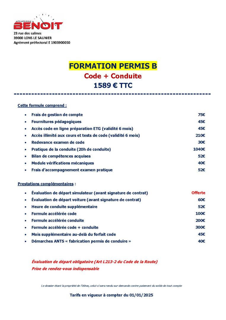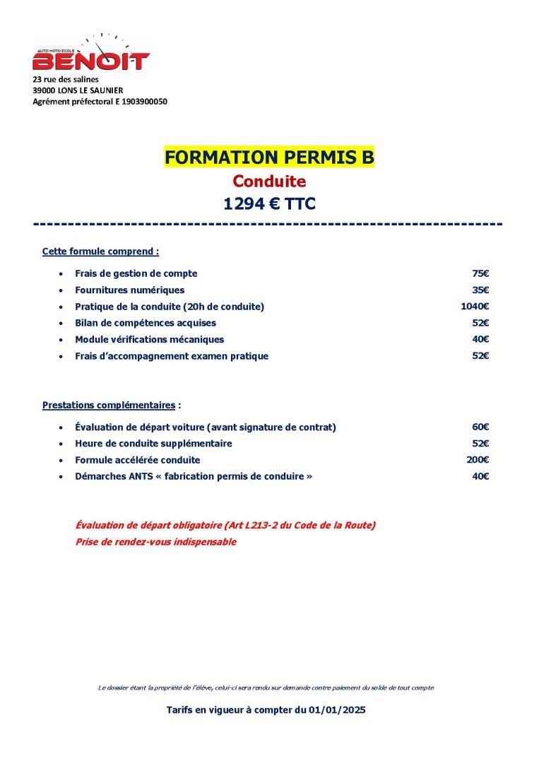 L'auto école BENOIT s'engage à vos côtés afin de :
