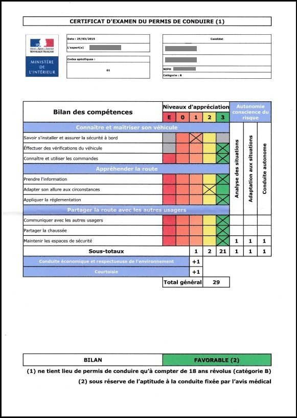 Si le résultat est favorable, vous devez, pour conduire dans l'attente de l'envoi de votre permis de conduire, obtenir le certificat d'examen du permis de conduire (CEPC) soit en le téléchargeant directement par le biais du téléservice, soit en le demandant à votre auto-école. Avec une pièce d'identité, le CEPC tient lieu de permis de conduire pendant 4 mois à compter de la date d'examen. En cas de contrôle des forces de l'ordre, ce certificat peut être présenté en version papier ou sur un smartphone ou une tablette.